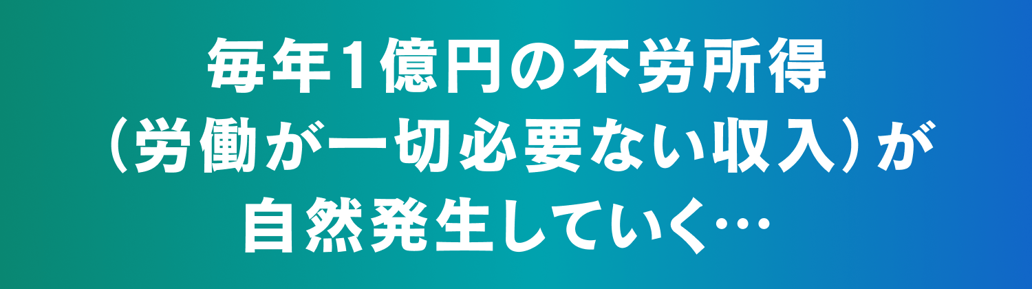 あなたの現状に一切左右されることなく、自動的に毎年1億円の収入が確定するスキームです。